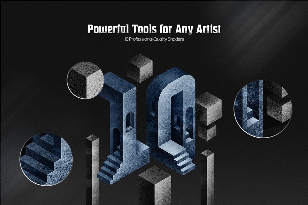 It includes 10 brushes applicable in various techniques, from flat art to complex 3D illustrations, as nothing will beat them in terms of adding volume or setting the forefront, medium plan, and background inside the image.