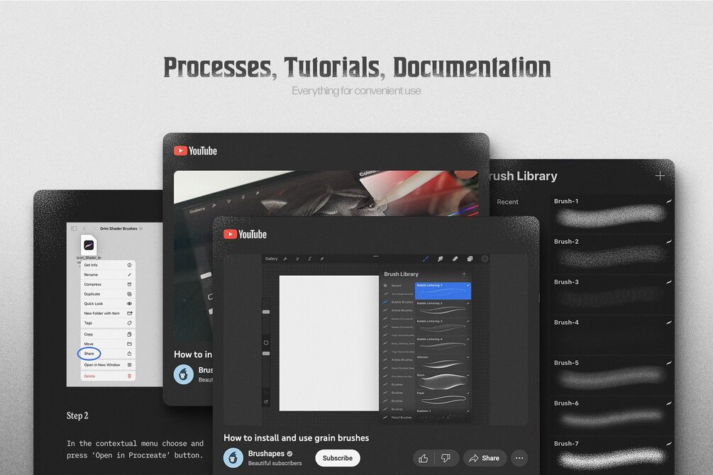 Knowing that we've aimed to create a perfect collection of grainy brushes able to satisfy the needs of digital artists using different software: Procreate, Photoshop, Illustrator, Affinity Designer, and Clip Studio Paint.